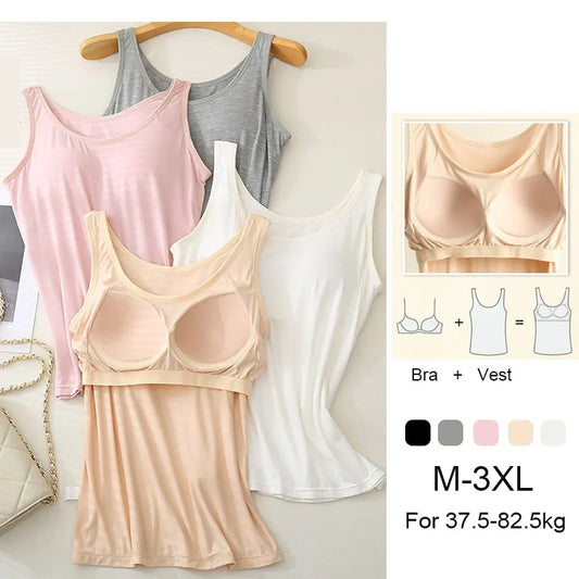 Soft Modal Plus Size Tank Tops With Fixed Chest Pad For Women Integrated Wear-Free Underwear For 37-82kg