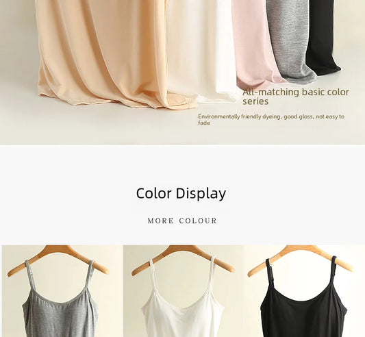 Women Vest Chest Pad Strap Thin Fit Bra One-piece Base Shirt Breathable Comfortable Back Beauty Cotton Pad