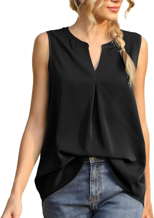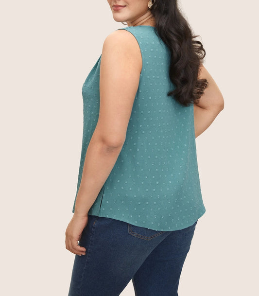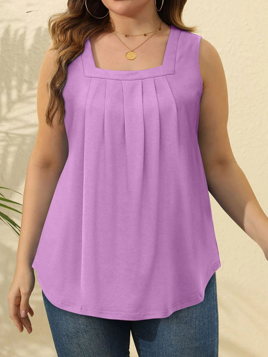 Plus Size Women's summer pleated square neck loose casual solid color sleeveless vest
