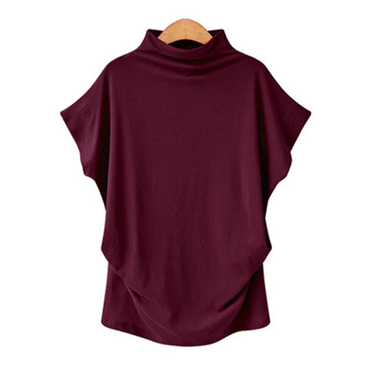 Women Turtleneck Short Sleeve Cotton Solid Casual Blouse Top T Shirt Plus Women's loose high necked short sleeved bottom shirt