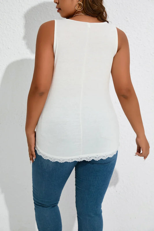 Plus Size 1XL-5XL Women Casual Lace Solid Color Vest Tank tops Ladies Fashion Sleeveless Loose Lace Vest Tops for Women