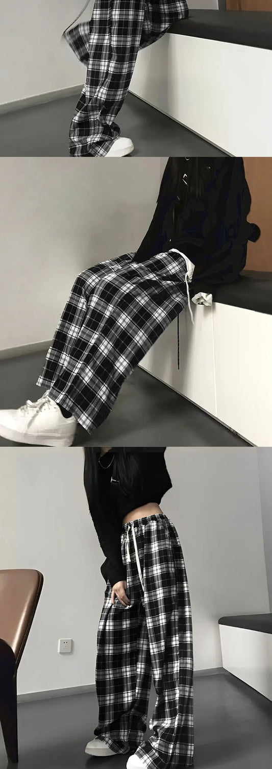 Casual Pants for Women Korean New Fashion Loose Black Plaid Summer Harajuku Students Harem Long Pants Streetwear Trousers Chic